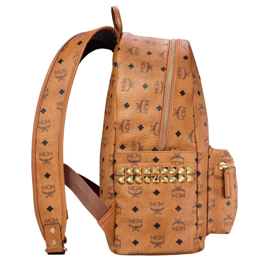MCM STARK SIDE STUDS BACKPACK IN VISETOS COGNAC