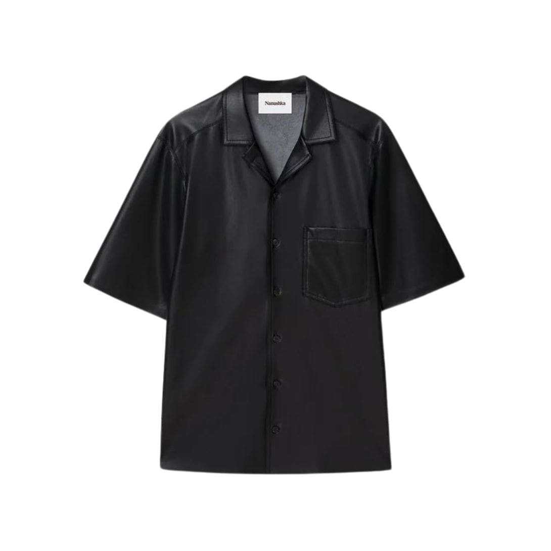 In conclusion, the NANUSHKA Bodil Okobor Alt-Leather Shirt is a standout piece that embodies the perfect blend of structured formality and modern sustainability. Its use of eco-friendly OKOBORâ„¢ alt-leather, along with its open collar, small patch pocket, and tailored fit, make it a versatile and stylish addition to any wardrobe. Whether worn alone or paired with the coordinating Doxxi shorts or Jun pants, the Bodil shirt offers a refined and conscientious approach to contemporary fashion. Embrace the elegance and sustainability of the Bodil shirt and elevate your everyday style.