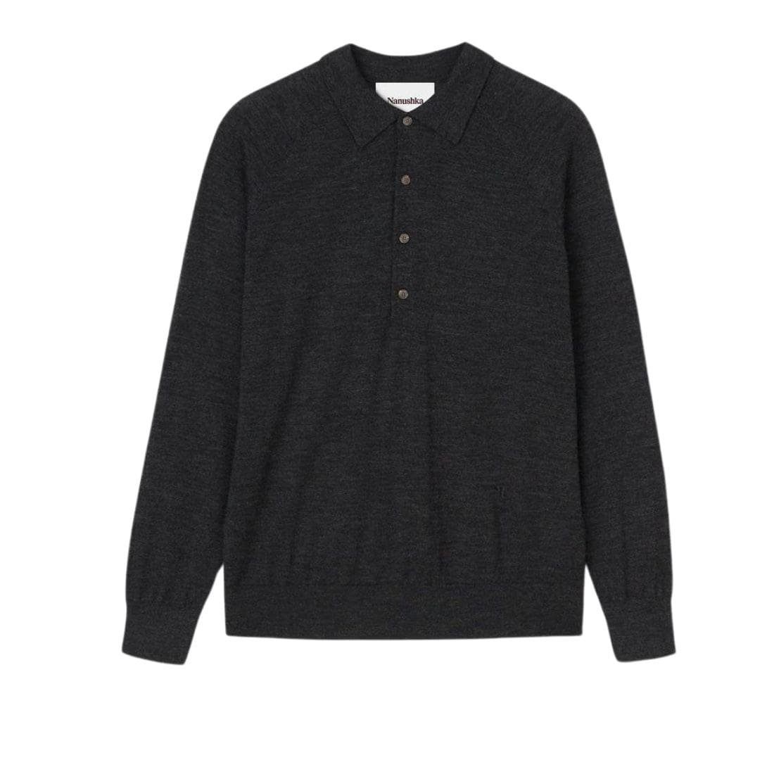 NANUSHKA PLATO MERINO WOOL POLO SHIRT BLACK
