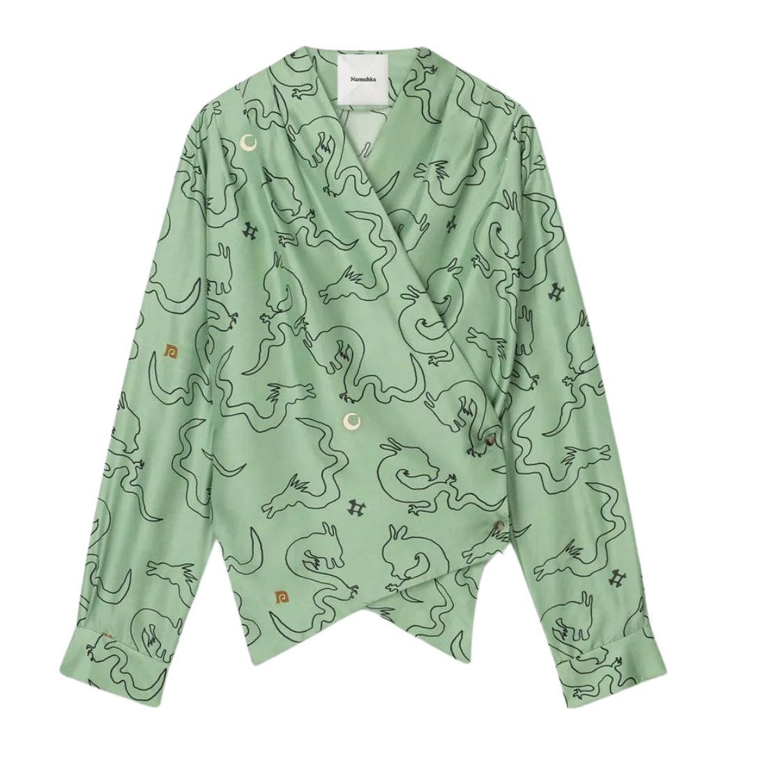 NANUSHKA TEBBE DRAPPED TWILL SILK SHIRT GREEN reimagines the timeless elegance of classic suiting with a contemporary twist, setting a new standard for sophisticated yet effortless style. Crafted with meticulous attention to detail, this shirt embodies the brand’s commitment to quality craftsmanship and innovative design.