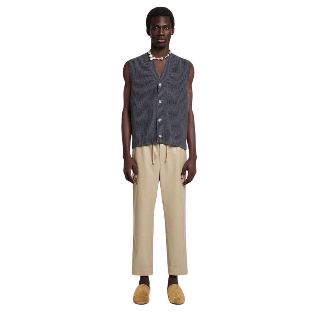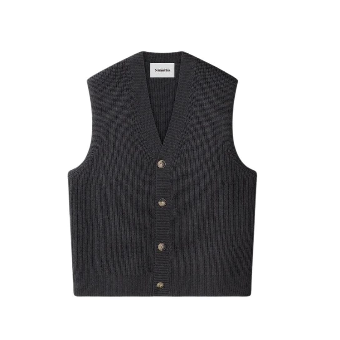 Versatility meets luxury in the Terence button-front NANUSHKA TERENCE CASHMERE-BLEND VEST SCHOOLGREY. Crafted with meticulous attention to detail, this garment seamlessly transitions from solo wear to layering, making it a versatile addition to any wardrobe.