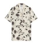 At the heart of its design lies an expressive black floral print, adding a touch of whimsy and charm to the shirt’s overall aesthetic. This captivating print not only enhances the shirt’s visual appeal but also infuses it with a sense of artistry and individuality, making it a standout piece in any wardrobe.