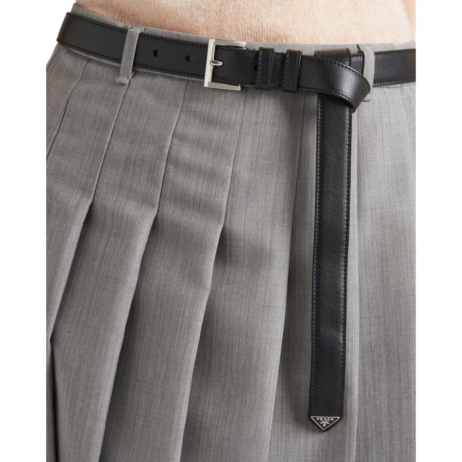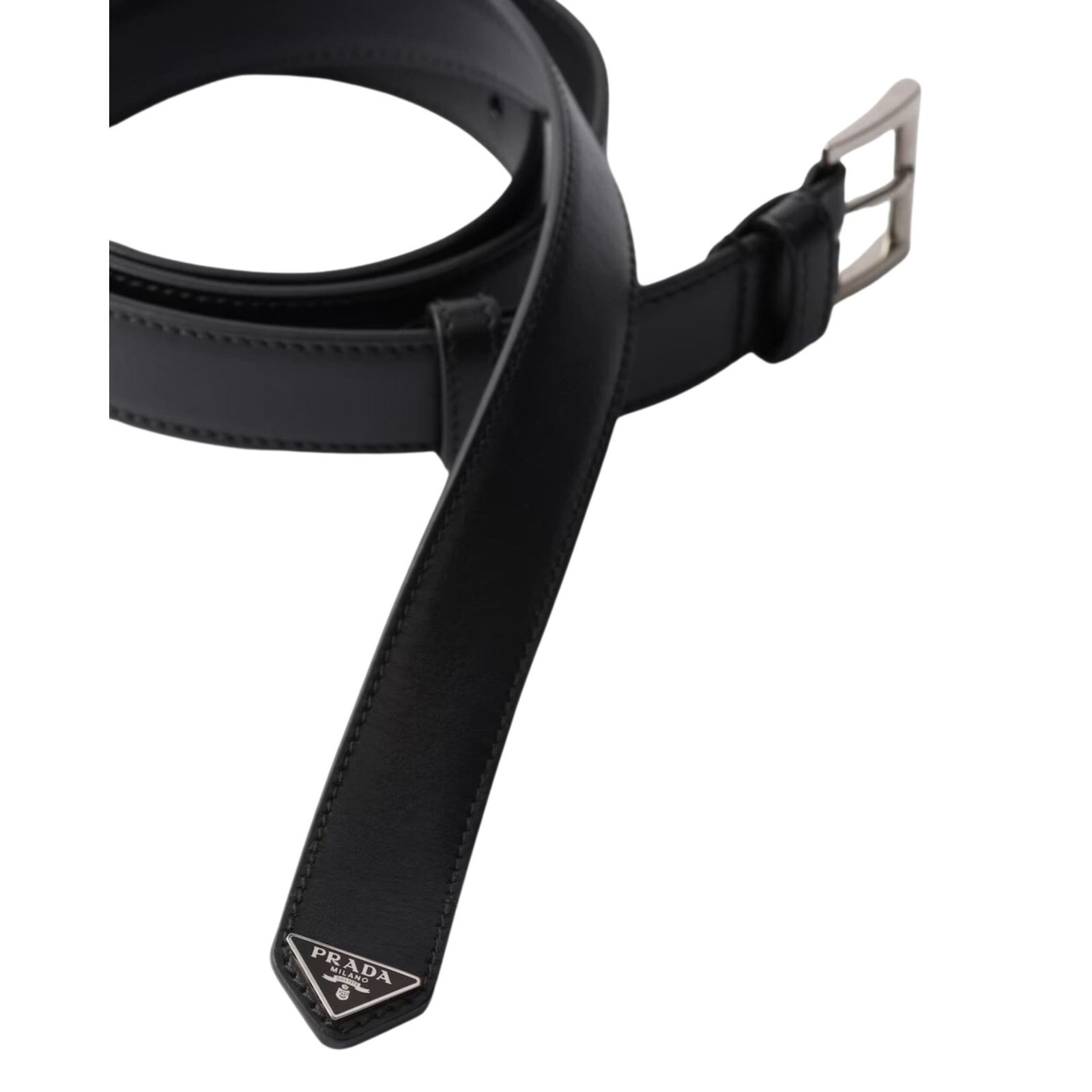 Versatile and chic, this Prada belt effortlessly elevates any ensemble, whether paired with tailored trousers for a polished office look or cinched around the waist of a little black dress for evening elegance. Its understated elegance makes it the perfect finishing touch for any outfit, adding a touch of sophistication to every occasion.