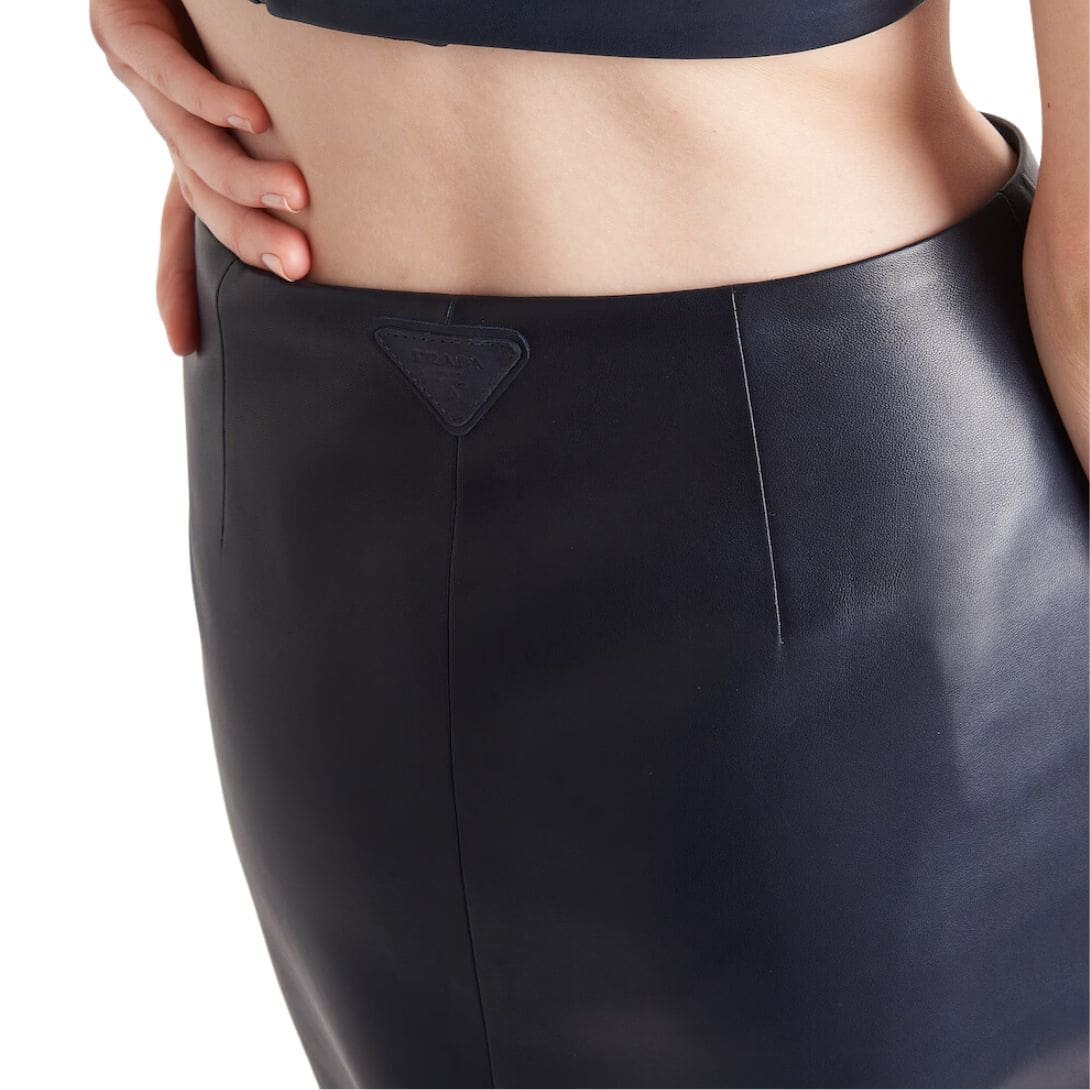 Overall, the Prada Long Nappa Leather Skirt is a testament to Prada’s craftsmanship and design ethos, offering a timeless piece that blends luxury with everyday wearability. Its versatile nature and impeccable construction make it a valuable addition to any wardrobe, appealing to those who appreciate both style and substance.
