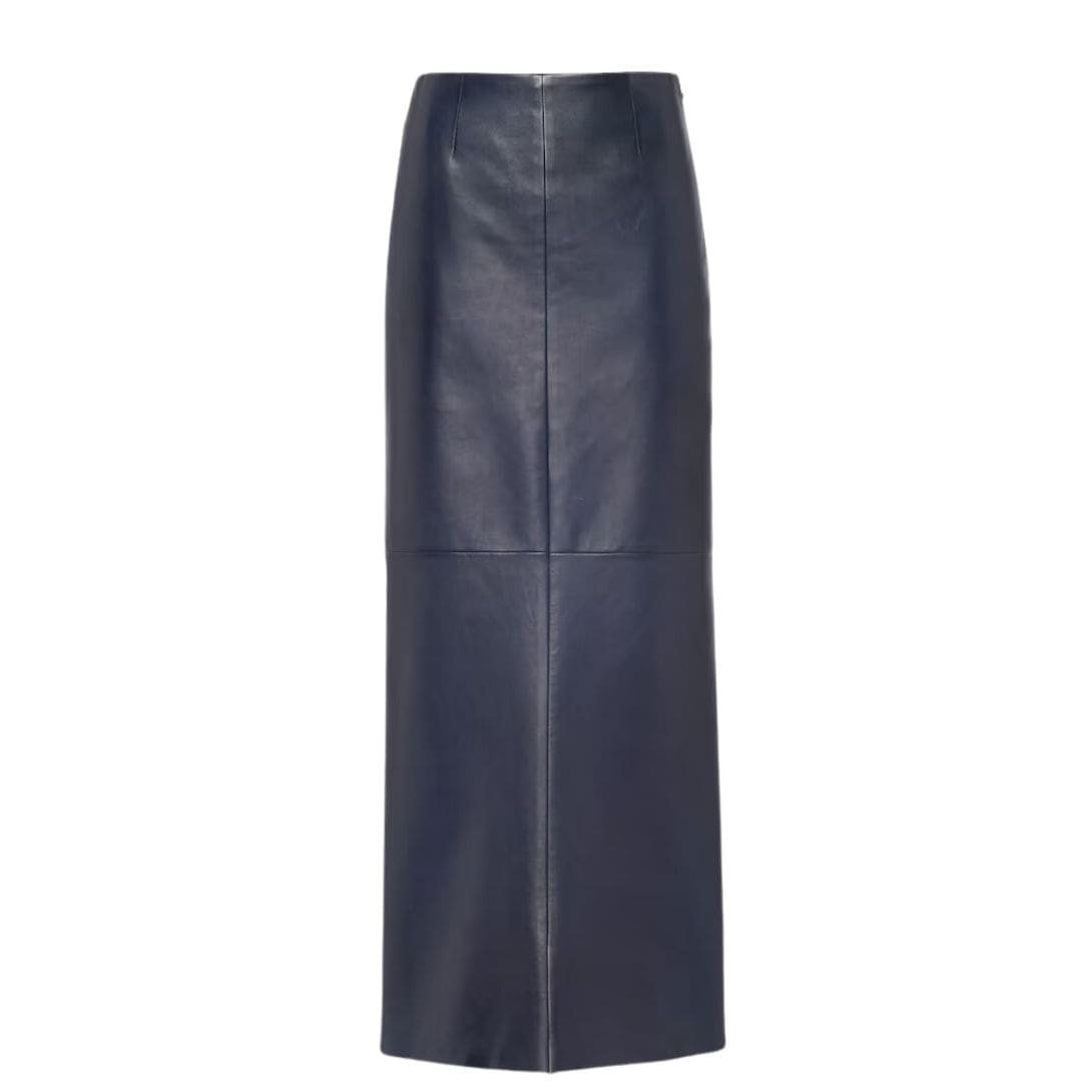 The skirt is tailored with precision, featuring a fitted waist that transitions into a subtle A-line shape, allowing for ease of movement while maintaining a structured look. The simplicity of the design is accentuated by discreet details such as a concealed side zipper for a seamless finish and an interior lining that ensures comfort against the skin.
