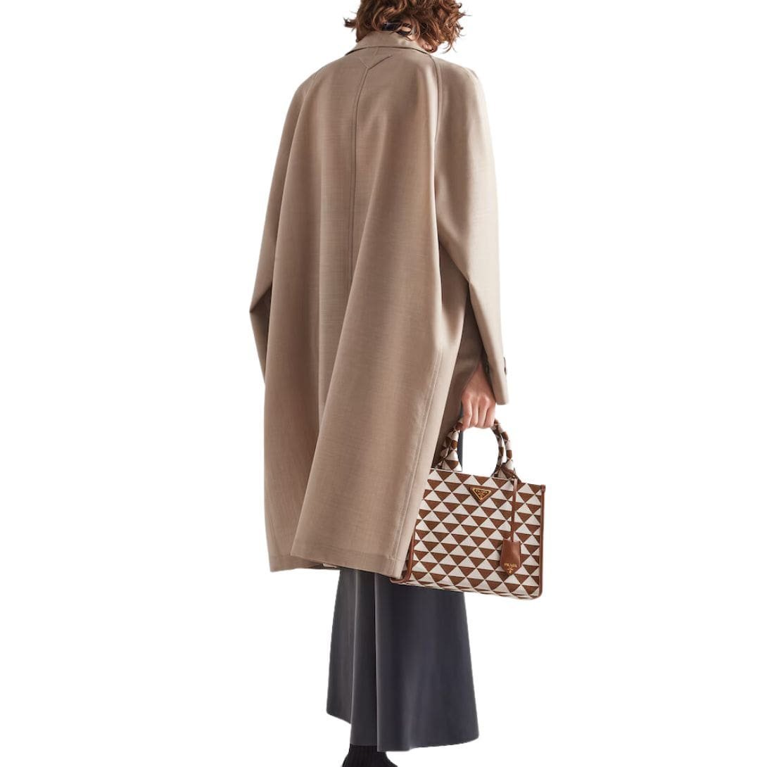 This skirt features a high-waisted design, which elongates the figure and offers a flattering silhouette. The clean lines and minimalist aesthetic are quintessentially Prada, showcasing the brand’s dedication to understated yet impactful design. The length of the skirt extends to the mid-calf, striking a balance between contemporary style and classic sophistication. This makes it a versatile piece suitable for both day and evening wear.