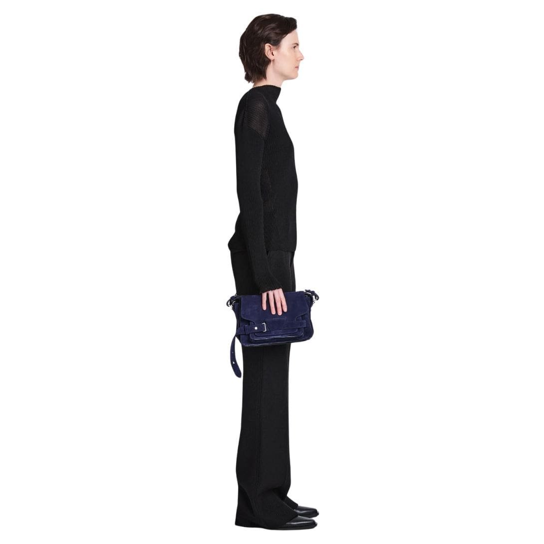 Indulge in understated elegance with Proenza Beacon Saddle In Suede Deep Navy, a captivating creation that pays homage to the rugged charm of traditional workwear satchels. Crafted from sumptuously supple suede in a deep, alluring dark blue hue, this accessory embodies sophistication and refinement while embracing its utilitarian inspiration.