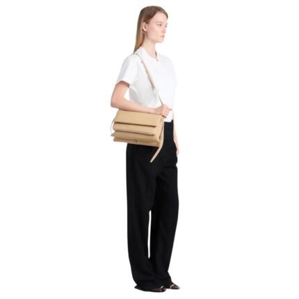 At the forefront of the design are the signature belted straps adorned with a distinguished D-ring buckle, securing the fold-over flap with both practicality and style. Inspired by the functionality of workwear satchels, these straps add a touch of rugged elegance to the bag while ensuring the safety of your belongings.