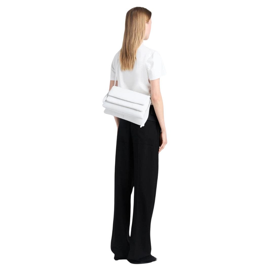 Step into the Proenza City Bag Optic White, world of high fashion with Look 11 from the Spring 2024 Runway Collection, showcasing the luxurious City Bag. Meticulously crafted from supple nappa leather, the Proenza City Bag Optic Whites exudes sophistication and style, setting a new standard for urban chic.