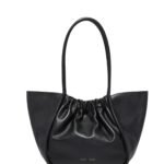 Step into the realm of timeless sophistication with the Proenza Large Ruched Tote Black, meticulously crafted to embody a soft, unstructured silhouette that exudes effortless elegance. Its design is a seamless fusion of form and function, featuring a ruched top adorned with the signature gold-tone logo stamp, a symbol of exquisite craftsmanship and attention to detail.