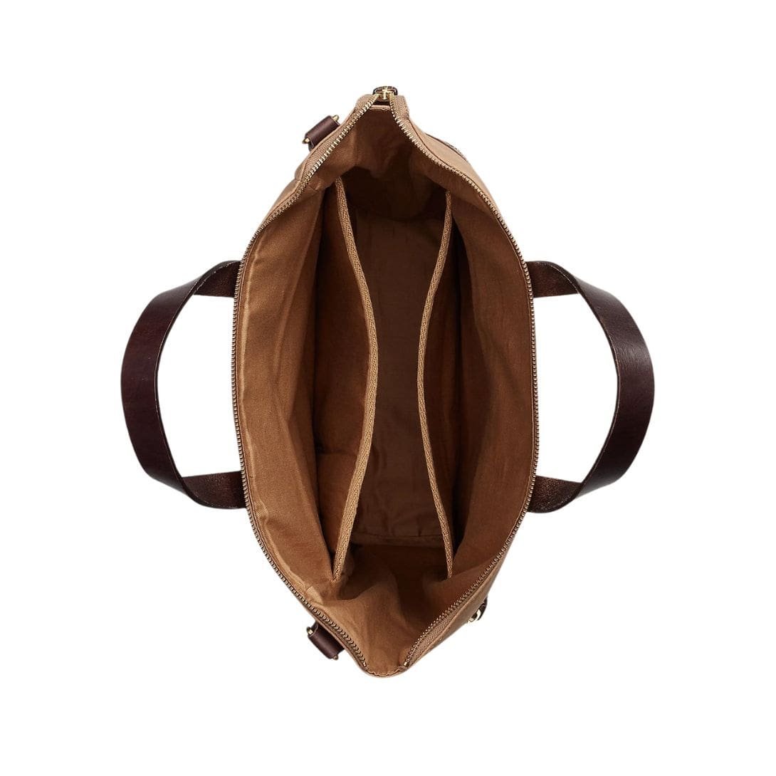 At first glance, the tote exudes an air of understated elegance. The durable canvas body, expertly woven with precision, forms the foundation of the bag’s aesthetic appeal. The neutral canvas serves as a versatile backdrop for the contrasting leather trim, adding a touch of refinement and structure to the overall silhouette.