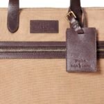 The supple leather trim, meticulously hand-selected for its quality and texture, accentuates the tote’s edges and handles, elevating its visual appeal while ensuring durability and longevity. The rich, earthy tones of the leather complement the canvas beautifully, creating a harmonious blend of materials that exudes sophistication and style.