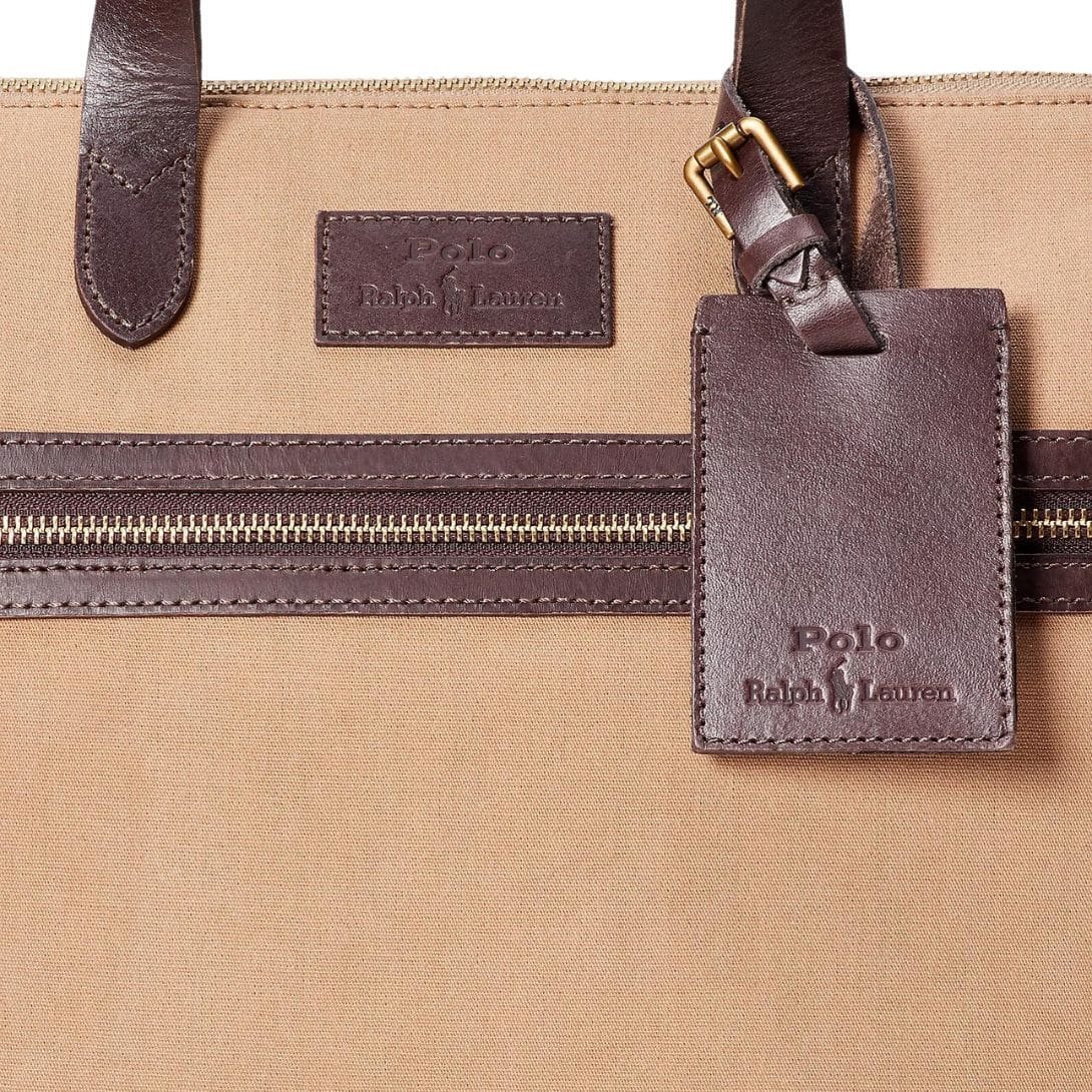 RALPH LAUREN LEATHER TRIM CANVAS BRIEFCASE