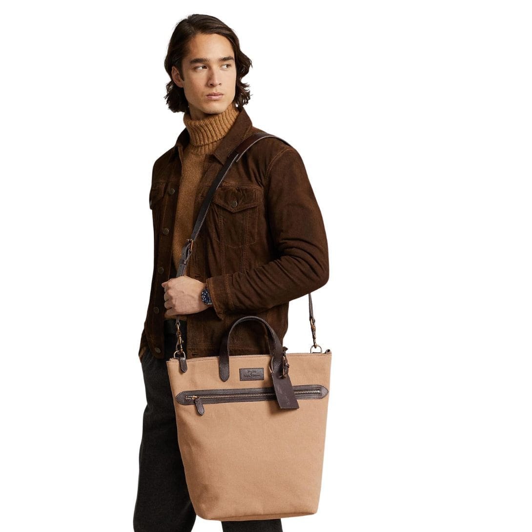 The attention to detail extends to every aspect of the tote, from the precision stitching to the subtle embossed logo, reflecting Ralph Lauren’s commitment to quality craftsmanship and understated luxury.