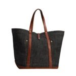 At first glance, the tote’s exterior showcases a fusion of rich, indigo denim and supple leather trim, creating a harmonious contrast that is both visually striking and durable. The denim fabric, known for its rugged charm and enduring appeal, lends a sense of casual refinement, making it an ideal companion for everyday wear. Complementing the denim, the luxurious leather trim adds a touch of opulence, elevating the tote’s aesthetic and ensuring longevity.