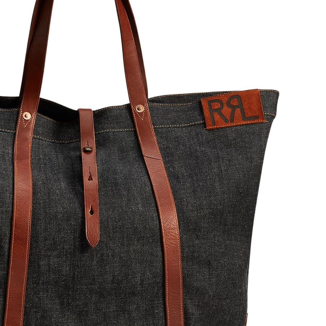 RALPH LAUREN LEATHER-TRIM DENIM TOTE
