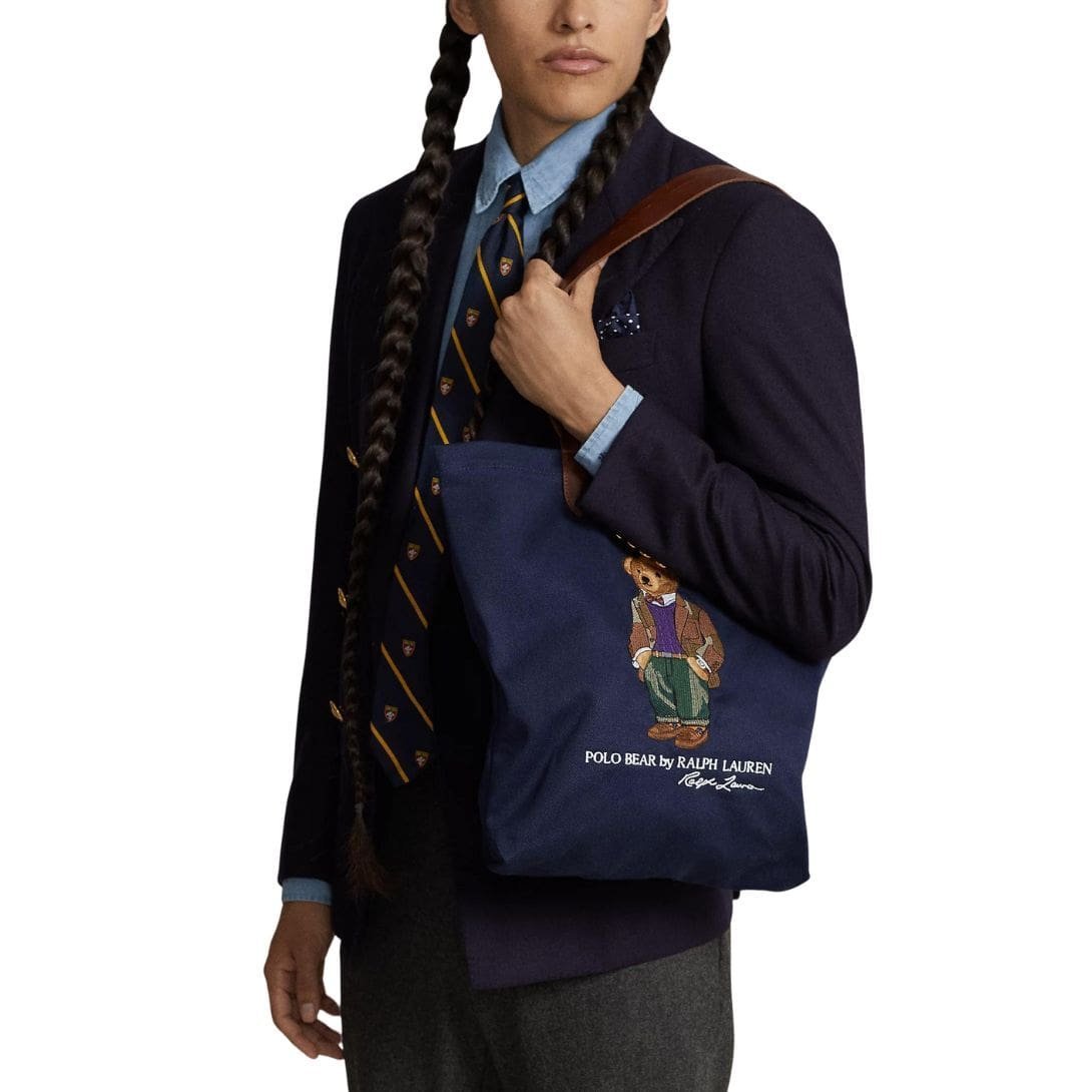 Constructed from premium twill fabric, the tote exudes a luxurious texture that is both durable and refined. The fabric’s smooth surface showcases the iconic Polo Bear motif, a symbol of Ralph Lauren’s heritage and commitment to classic Americana. Rendered in intricate embroidery or printed with meticulous precision, the Polo Bear adds a touch of whimsy and charm to the tote, elevating its appeal with a playful yet sophisticated aesthetic.