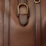 The design of the tote seamlessly blends classic elements with modern sensibilities. Its clean lines and structured silhouette exude understated elegance, making it a versatile accessory that effortlessly transitions from day to night, boardroom to weekend getaway. The burnished finish lends a subtle sheen to the leather, adding depth and richness to its appearance while showcasing the natural beauty of the material.