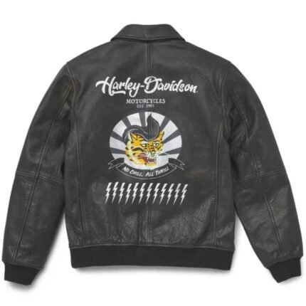 REAL LEATHER HARLEY DAVIDSON BLACK MOTORCYCLE BIKER GENUINE VENTED JACKET