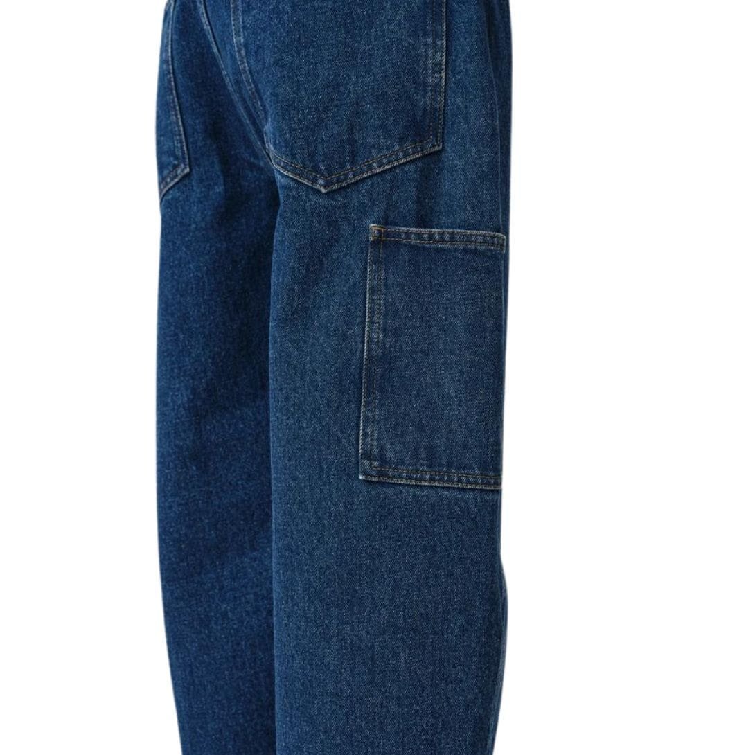 The design of the Helle Jeans includes traditional five-pocket styling, with the classic riveted pockets adding a touch of authenticity. The front features a zipper fly with a button closure, offering both practicality and ease of wear. Subtle distressing around the pockets and hem adds a hint of edginess, enhancing the overall aesthetic without overwhelming the clean lines of the jeans. SAKS POTTS HELLE JEANS INDIGO BLUE