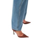 Attention to detail is evident in the design of these jeans. They are adorned with classic five-pocket styling, providing both functionality and a timeless aesthetic. The pockets are meticulously crafted, offering just the right amount of space for essentials while maintaining the sleek line of the jeans. The brass hardware, including the button and zipper, adds a touch of luxury and complements the medium indigo wash beautifully.