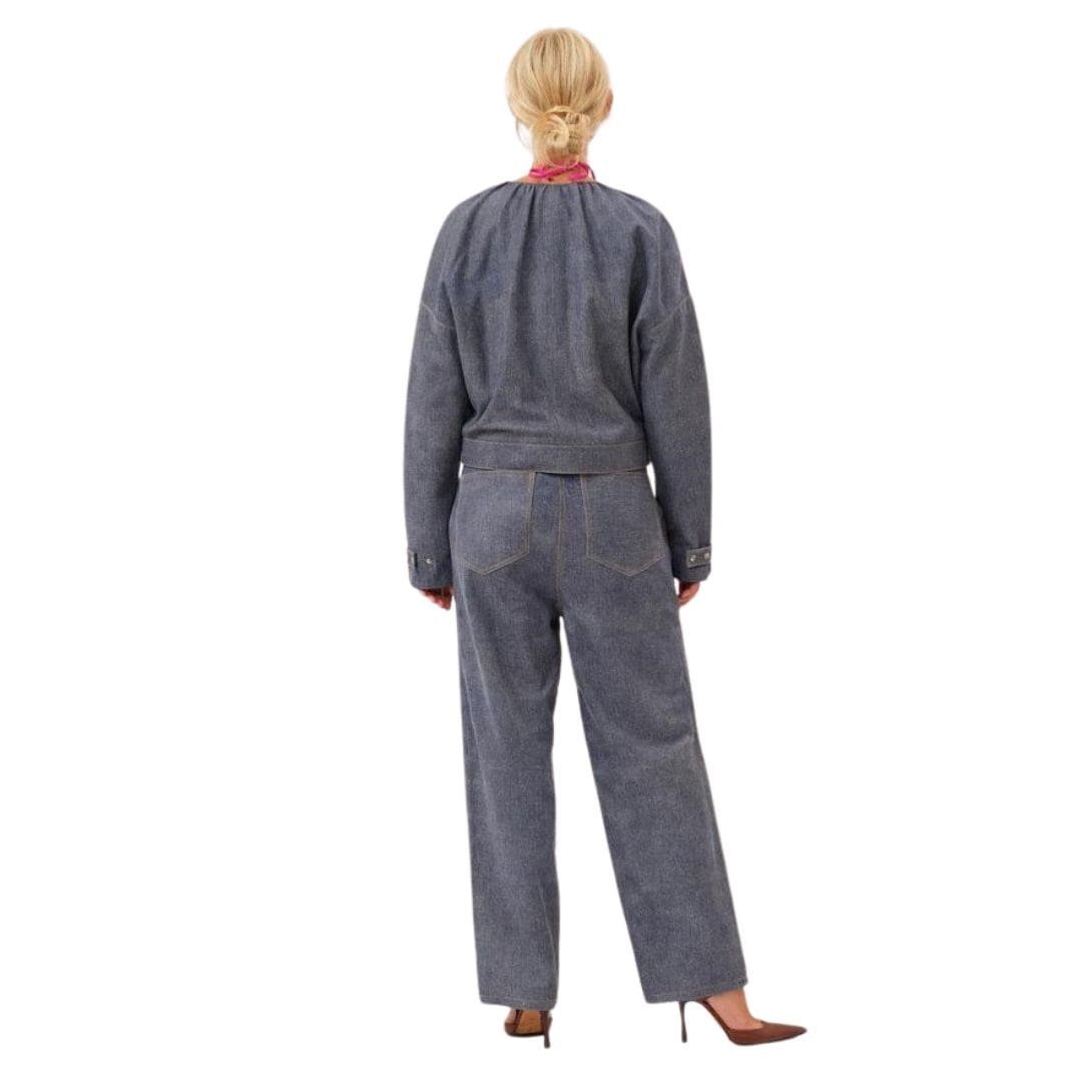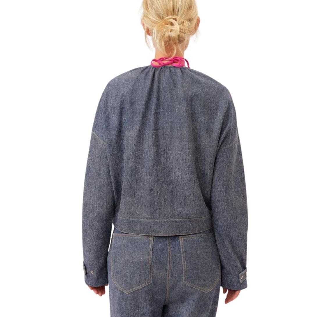 This blue Margretha Jacket is a testament to SAKS POTTS’ commitment to high fashion and quality craftsmanship. Its rich color and classic design make it a versatile staple, ideal for adding a touch of luxury to your everyday ensembles or for making a statement at special occasions. Whether paired with tailored trousers or a chic skirt, the Margretha Jacket ensures a sophisticated and stylish appearance that stands out in any setting. SAKS POTTS MARGRETHA JACKET BLUE The jacket is adorned with sleek, functional pockets that maintain the clean lines of the design while offering practicality.  SAKS POTTS MARGRETHA JACKET BLUE The Margretha Jacket features a tailored, fitted silhouette that accentuates
