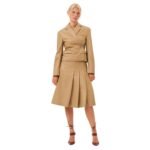 The blazer’s construction is meticulous, with attention to detail evident in every stitch. The fully lined interior ensures a smooth fit, while the padded shoulders provide structure and definition. The high-quality fabric blend ensures the blazer maintains its shape and resists wrinkles, making it a reliable choice for long days at the office or evenings out.