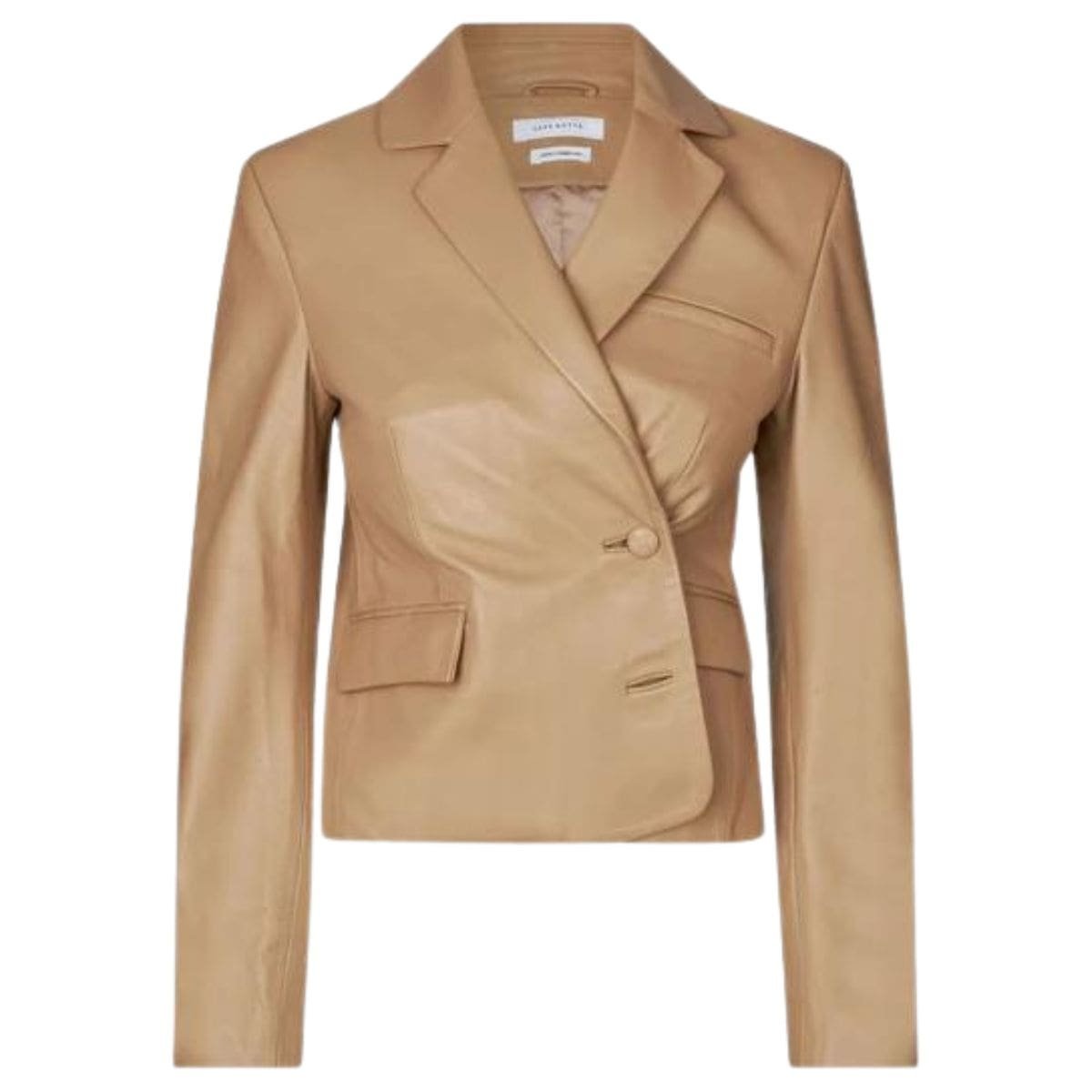 The Saks Potts Matteo Blazer in Chickpea is a refined and stylish piece that epitomizes modern sophistication. This blazer is crafted from a luxurious blend of materials, offering both comfort and durability. Its versatile chickpea color, a soft and muted beige, adds a touch of understated elegance to any wardrobe, making it an ideal choice for both professional and casual settings.