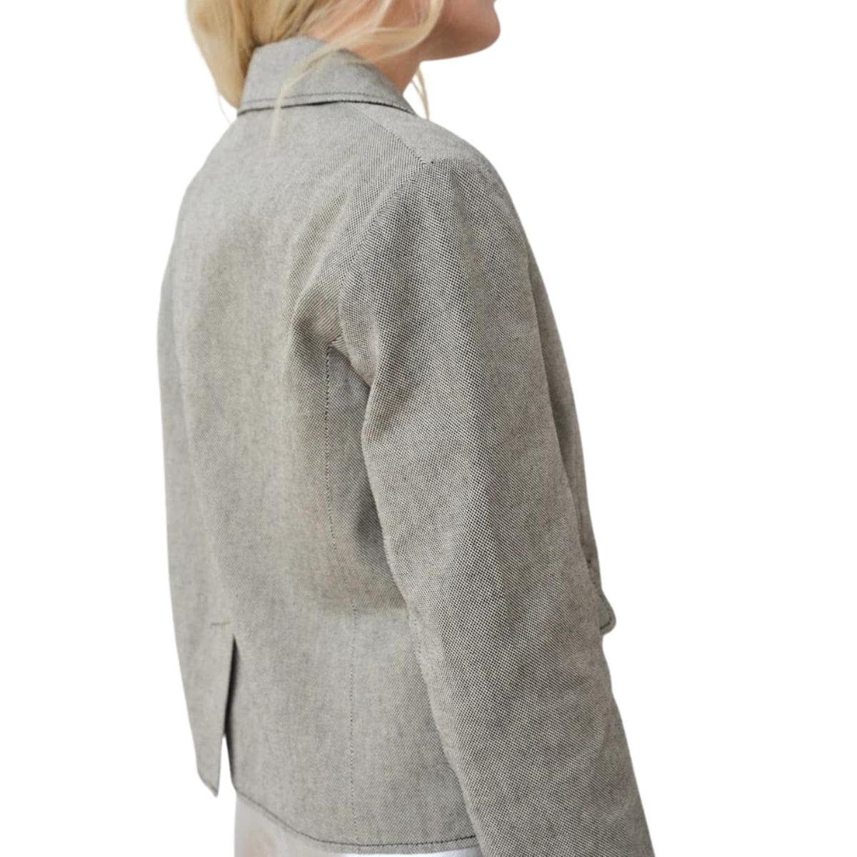 Functional yet stylish, the Olympia Blazer includes two front flap pockets, providing both practicality and a sleek design element. The back vent adds to the blazer’s wearability, allowing for ease of movement and a perfect drape. Whether paired with tailored trousers for a power suit look or worn over a dress for a chic, layered ensemble, the Olympia Blazer stands out as a versatile piece that elevates any outfit.