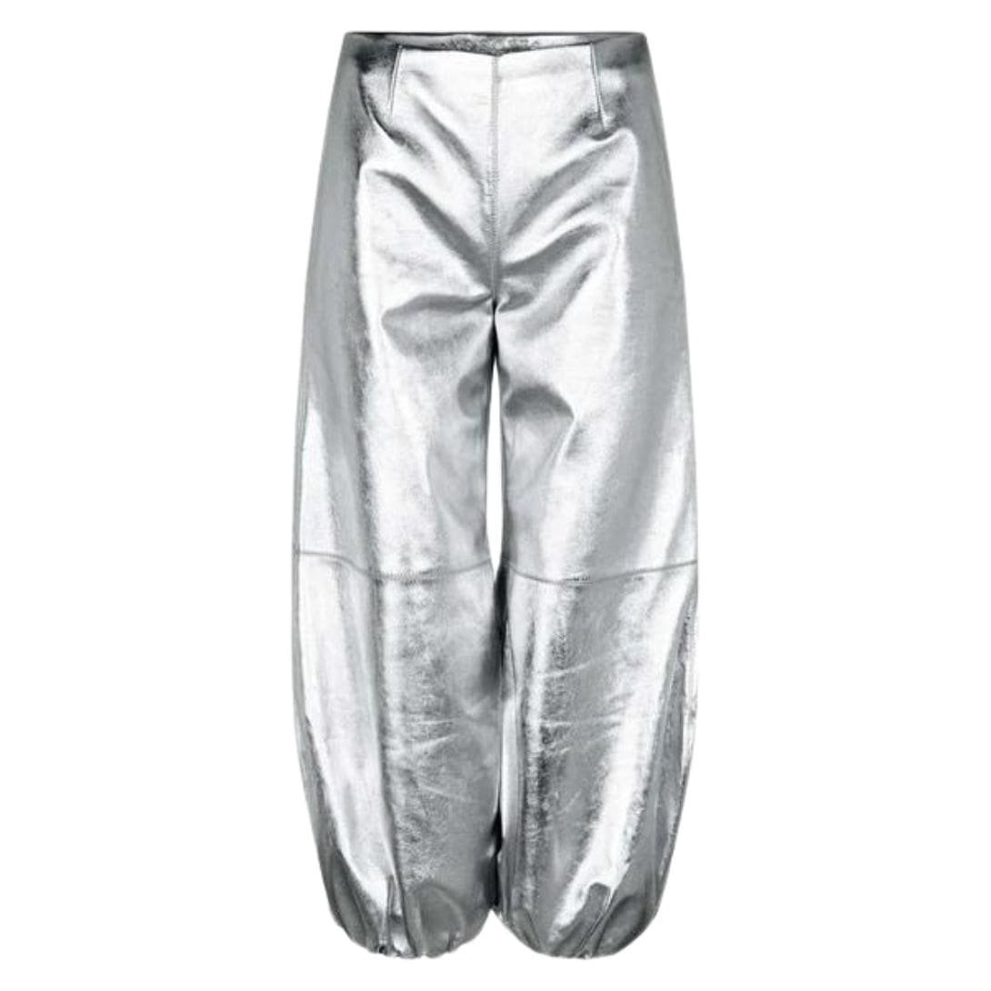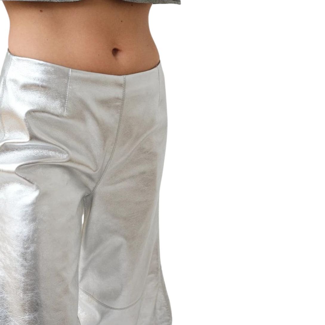 The Saks Potts Steffi Pants in Silver are a striking addition to any wardrobe, offering a perfect blend of contemporary style and luxurious materials. These pants are crafted from high-quality, metallic silver fabric that catches the light beautifully, creating a bold, eye-catching effect. The sleek, reflective finish adds a touch of futuristic elegance, making these pants ideal for fashion-forward individuals who want to stand out in any setting. SAKS POTTS STEFFI PANTS SILVER