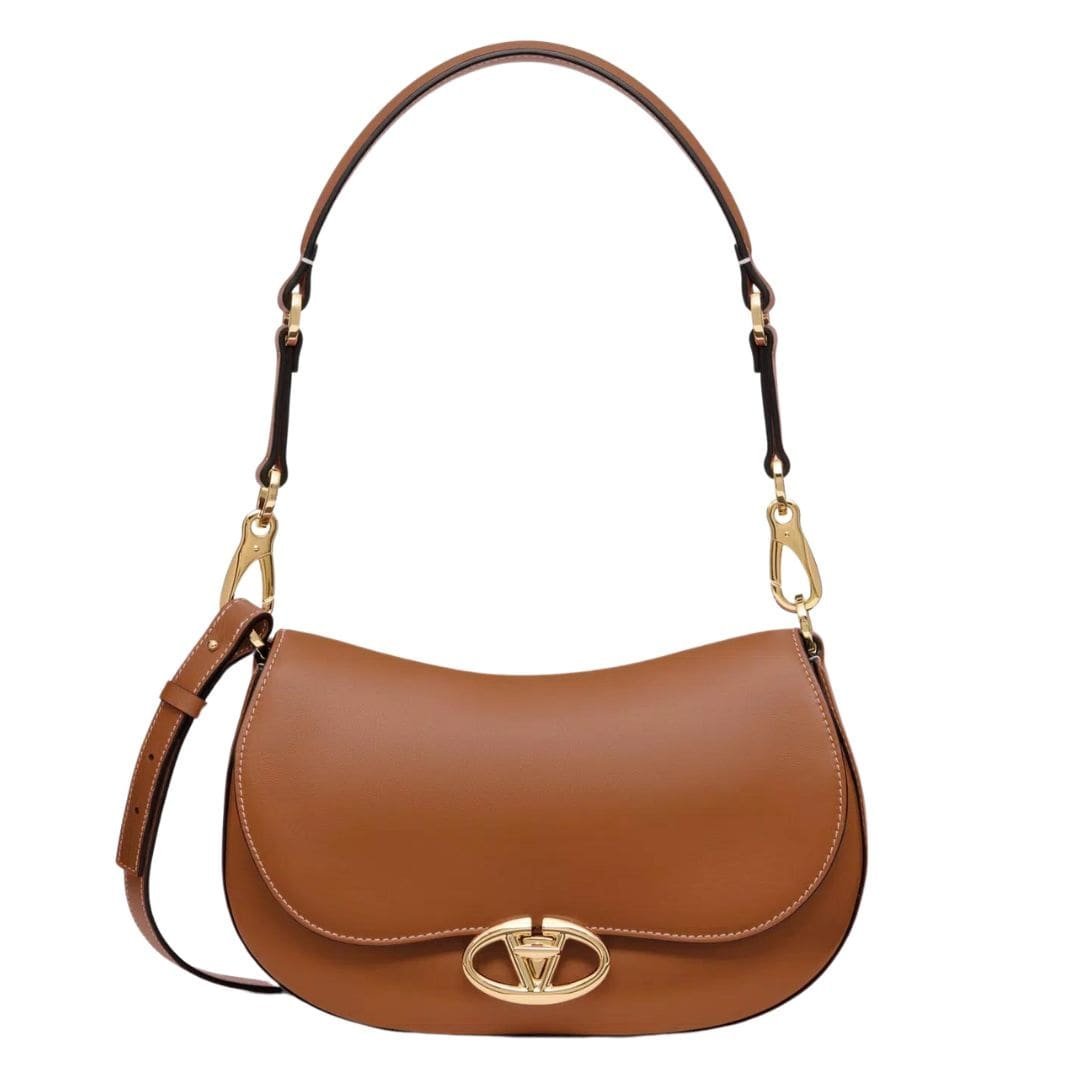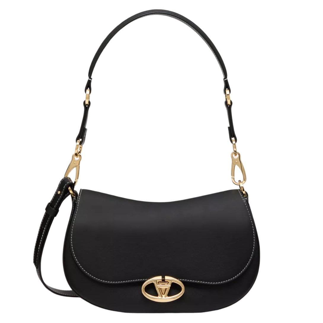 Introducing the small Valentino Garavani Ohval shoulder bag in nappa calfskin, crafted from luxurious nappa leather and featuring a VLogo Signature twist-lock closure. This chic bag offers versatile carrying options – it can be carried over the shoulder/crossbody, thanks to its handle and adjustable leather shoulder strap.