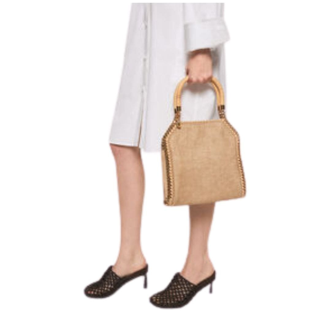 Mindfully handwoven from vegan, cruelty-free fabric with a textured twill finish, this stella mccartney Falabella mini tote bag stands among coveted vegan icons. Distinguished by its hand-laced, heavyweight diamond-cut chain outline and handles, its interior provides ample space for daily necessities, including a slip pocket for essentials.