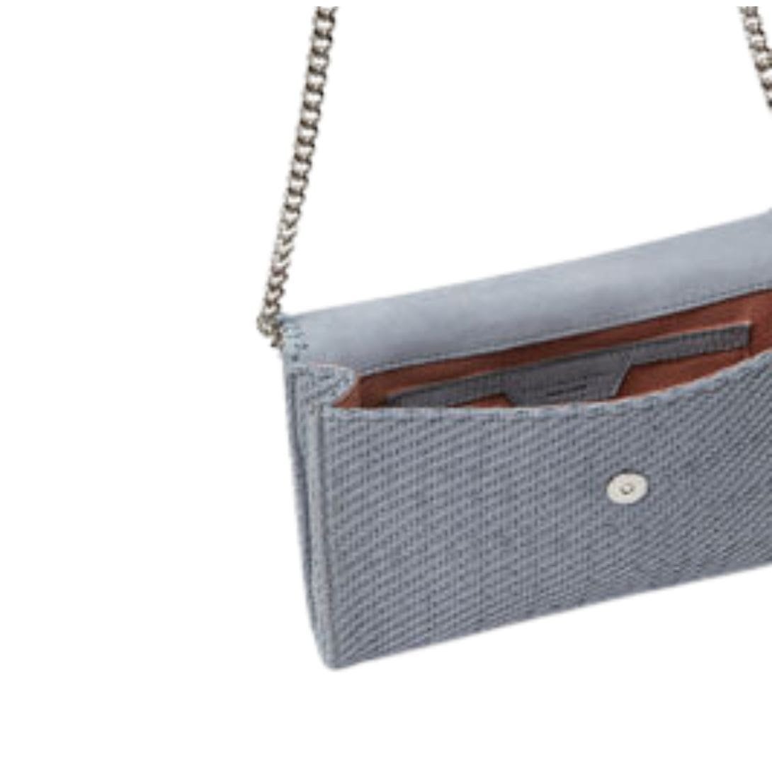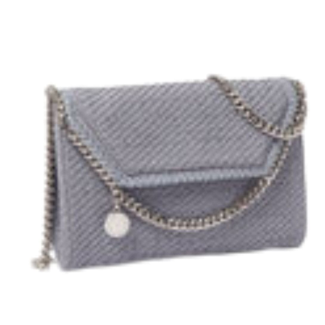 A classic Stella McCartney style is reimagined into an endlessly versatile silhouette, effortlessly slung across any ensemble. This envelope-shaped vegan Stella McCartney Falabella wallet crossbody bag is meticulously handwoven from individual strands of soft, smooth Alter Suede – our vegan alternative to animal leather – and accented by an iconic diamond-cut chain that seamlessly transitions into a crossbody shoulder strap.