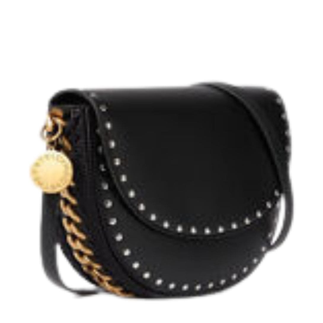STELLA MCCARTNEY FRAYME STUDDED GRAINY ALTER MAT MEDIUM FLAP SHOULDER BAG
