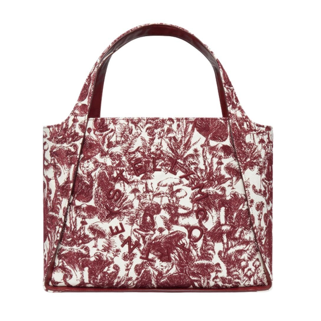 Stella Mccartney Logo Fungi Forest Toile De Jouy Tote Bag receives a seasonal update for Autumn 2023, featuring the enchanting Fungi Forest toile de Jouy print.