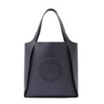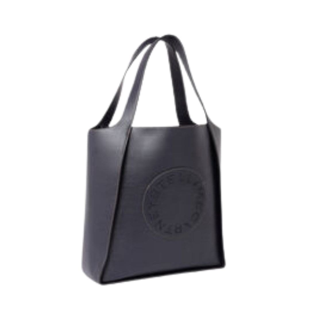 Exemplifying the timeless minimalism of the Stella McCartney Logo square tote bag by Stella McCartney offers versatile appeal for any occasion. Crafted in inky indigo blue, it is made from Alter Mat, a vegan alternative to leather with an embossed grain, featuring a perforated circular logo on the front. With two top handles for easy carrying, this tote includes stainless steel and recycled brass hardware, along with a detachable inner pouch for effortless organization of essentials.