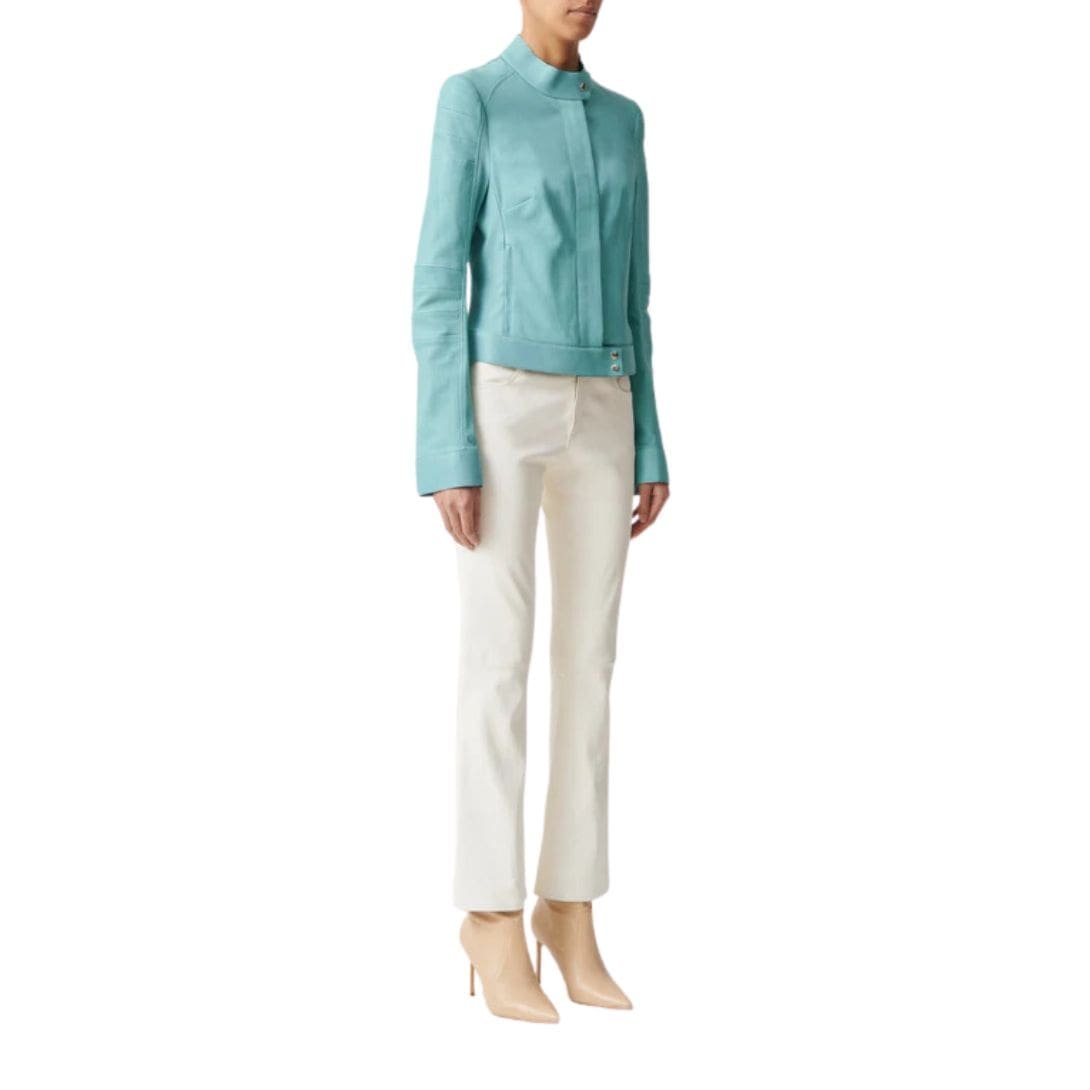 Introducing the STOULS Dean 22 Pants Flared Leather Jeans, a perfect blend of retro-inspired design and modern luxury. These pants are crafted from premium lambskin leather, offering a soft, supple feel and a sleek, polished look. Featuring a high-rise waist and a classic five-pocket design, the Dean 22 pants combine the iconic style of jeans with the sophistication of leather. The flared leg silhouette elongates the legs and adds a touch of vintage charm, making them a versatile choice for any occasion. Whether paired with a tailored blazer and heels for an upscale ensemble or with a casual top and boots for an effortlessly chic look, the STOULS Dean 22 Pants Flared Leather Jeans are a must-have for any fashion-forward wardrobe.