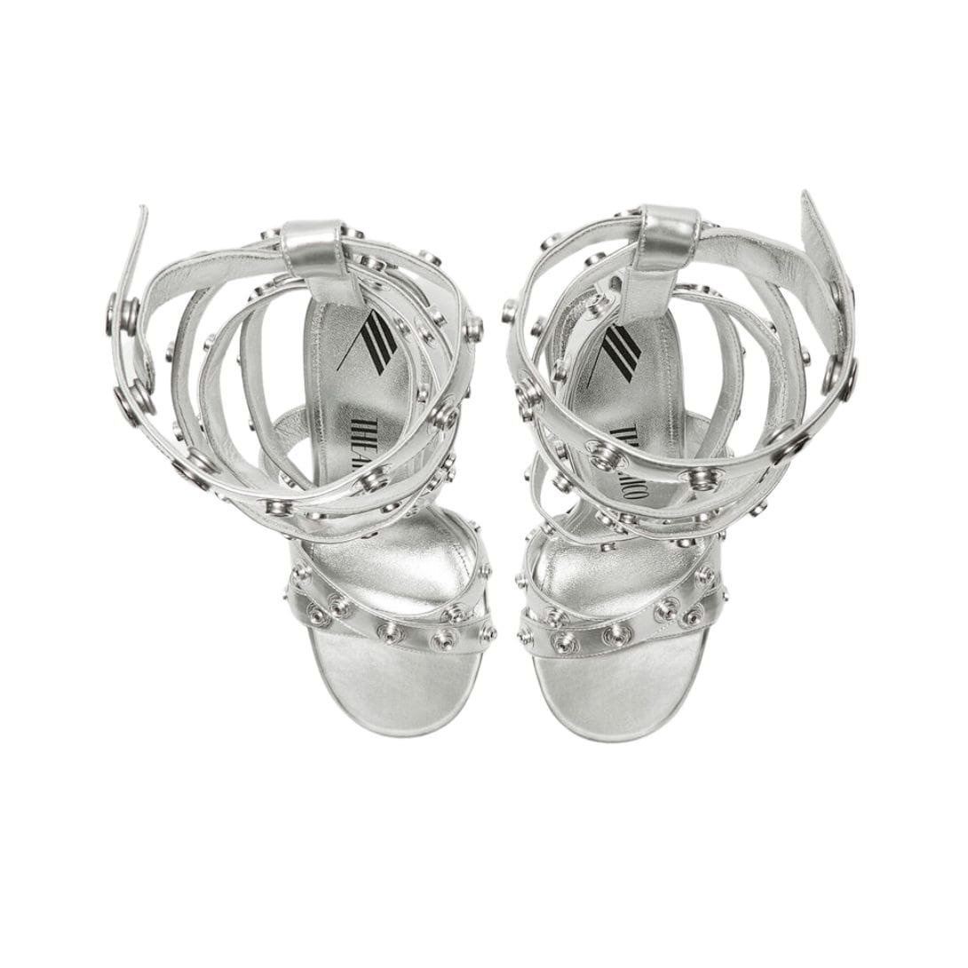 THE ATTICO ”COSMO” SILVER DOUBLE ANKLE STRAP SANDAL