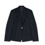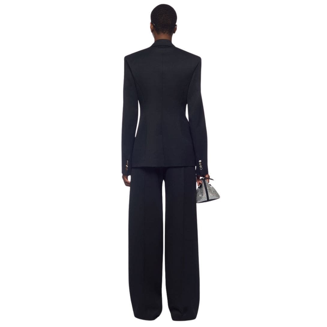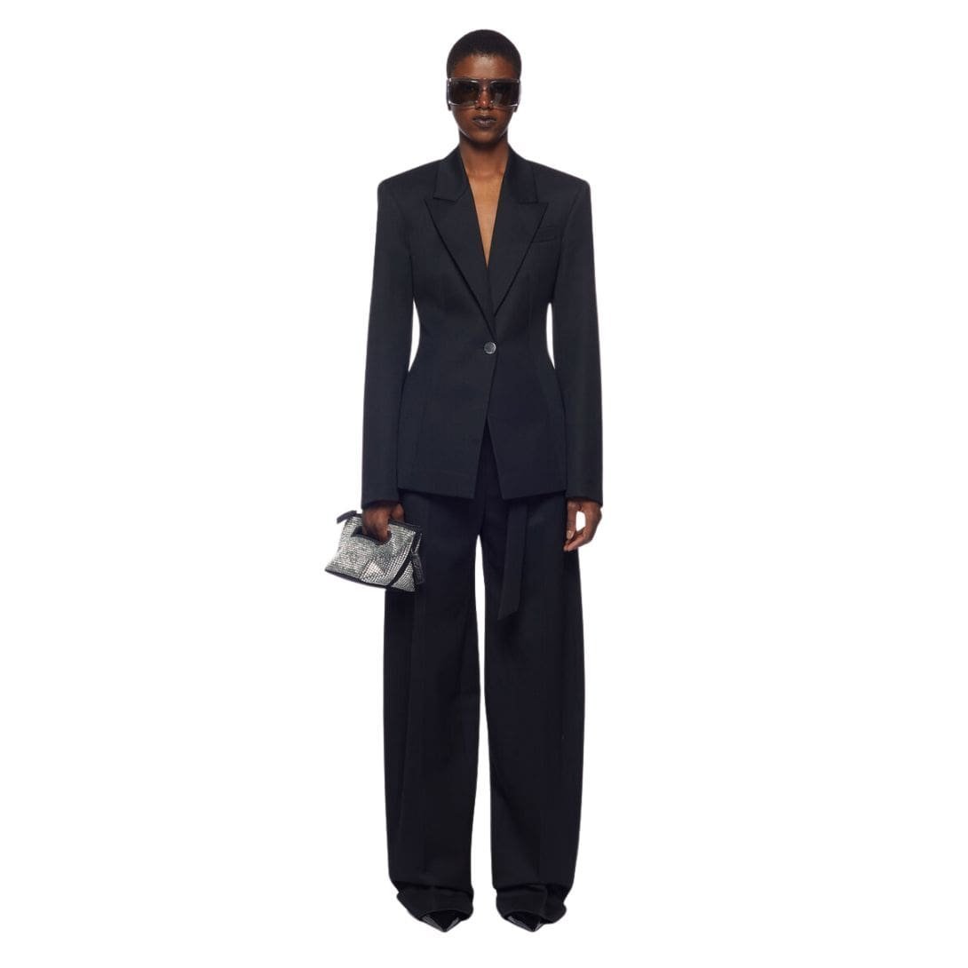 The Attico Glen Black Blazer gabardine features a distinctive logo metal button, showcasing refined elegance. Crafted in Italy, this blazer offers a sophisticated addition to your wardrobe.