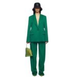 The Attico ”jagger” Emerald Long Pants in emerald cool wool, featuring an embroidered logo. Made in Italy.