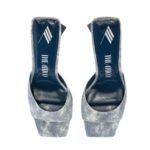 The Attico ”Mini Devon” Blue Denim Mule in blue denim printed leather with pyramid heel, height 85mm. Made in Italy.