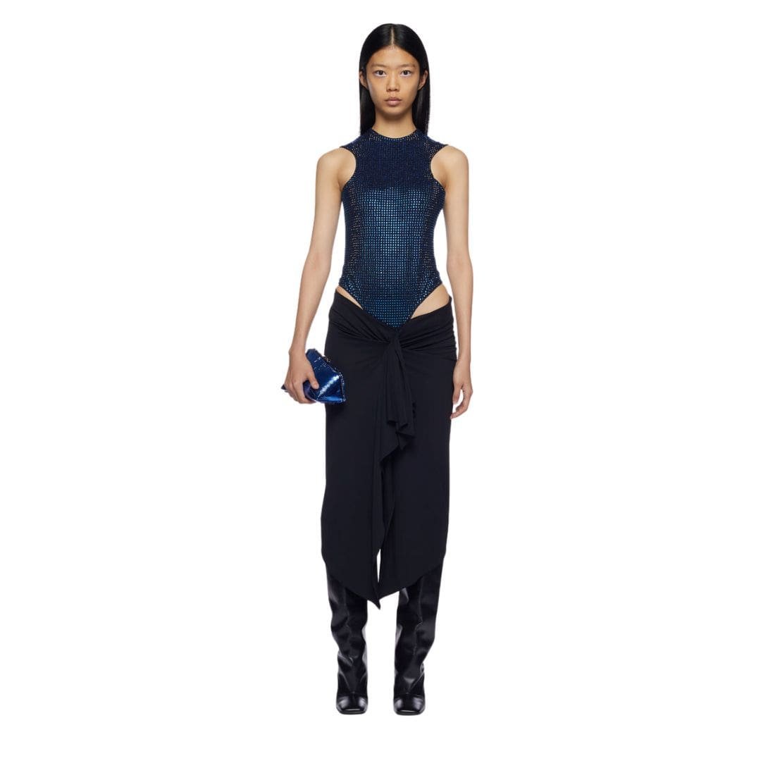 Be the first to review “THE ATTICO ”MIRNA” BLUE AND BLACK MIDI DRESS” Cancel reply