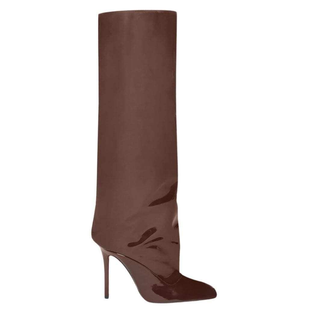 The Attico ”Sienna” Chocolate Boot in chocolate patent nappa leather with a stiletto heel, height 105mm. Made in Italy.