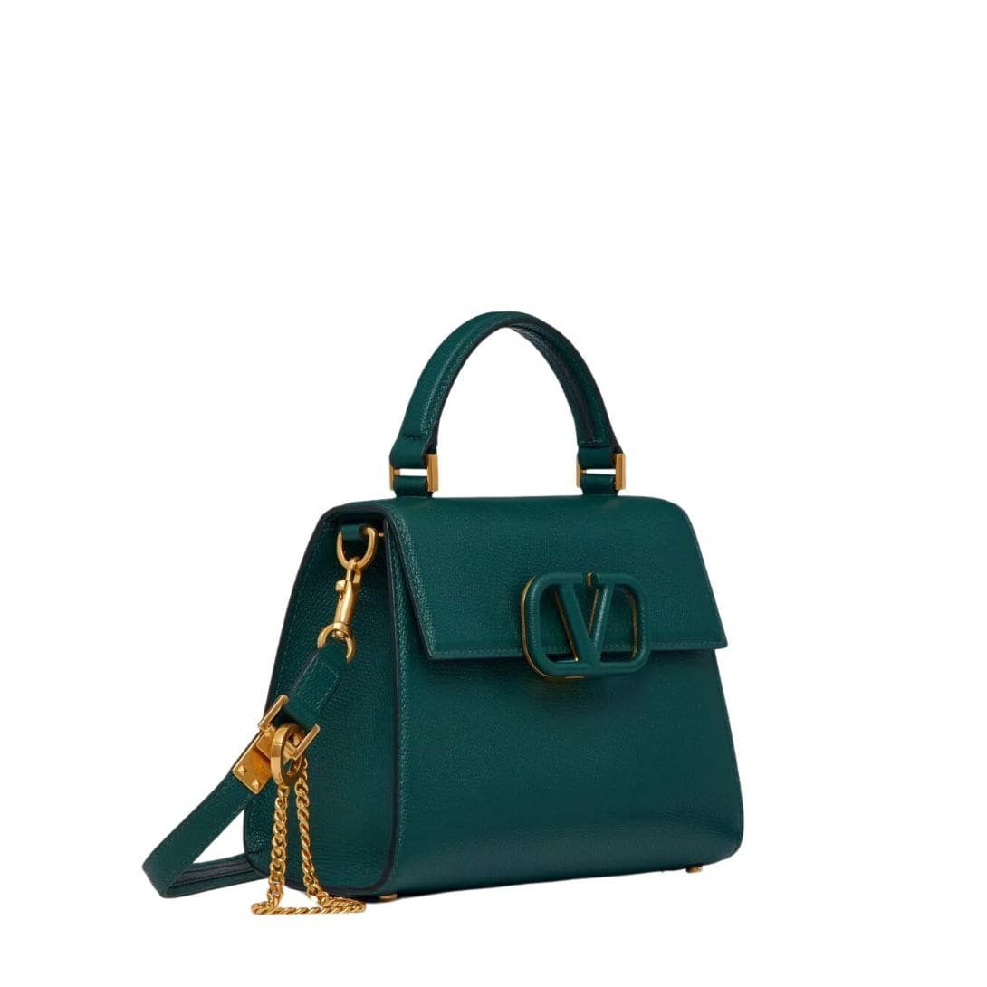 Introducing the Valentino Garavani Vsling Grainy Calfskin handbag, crafted from premium grainy calfskin leather with the iconic VLogo Signature closure. Versatile and chic, it features an extendable shoulder strap for crossbody or shoulder wear, or hand-carrying using the handle.