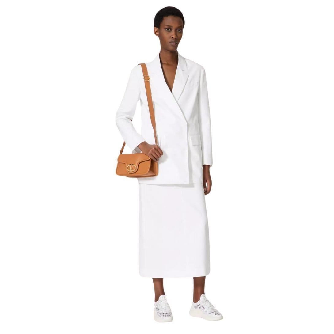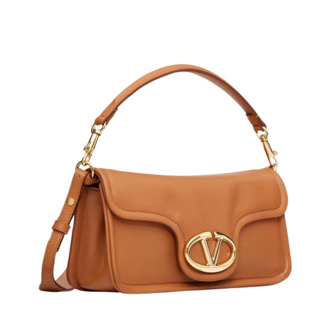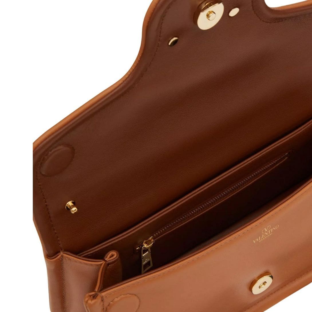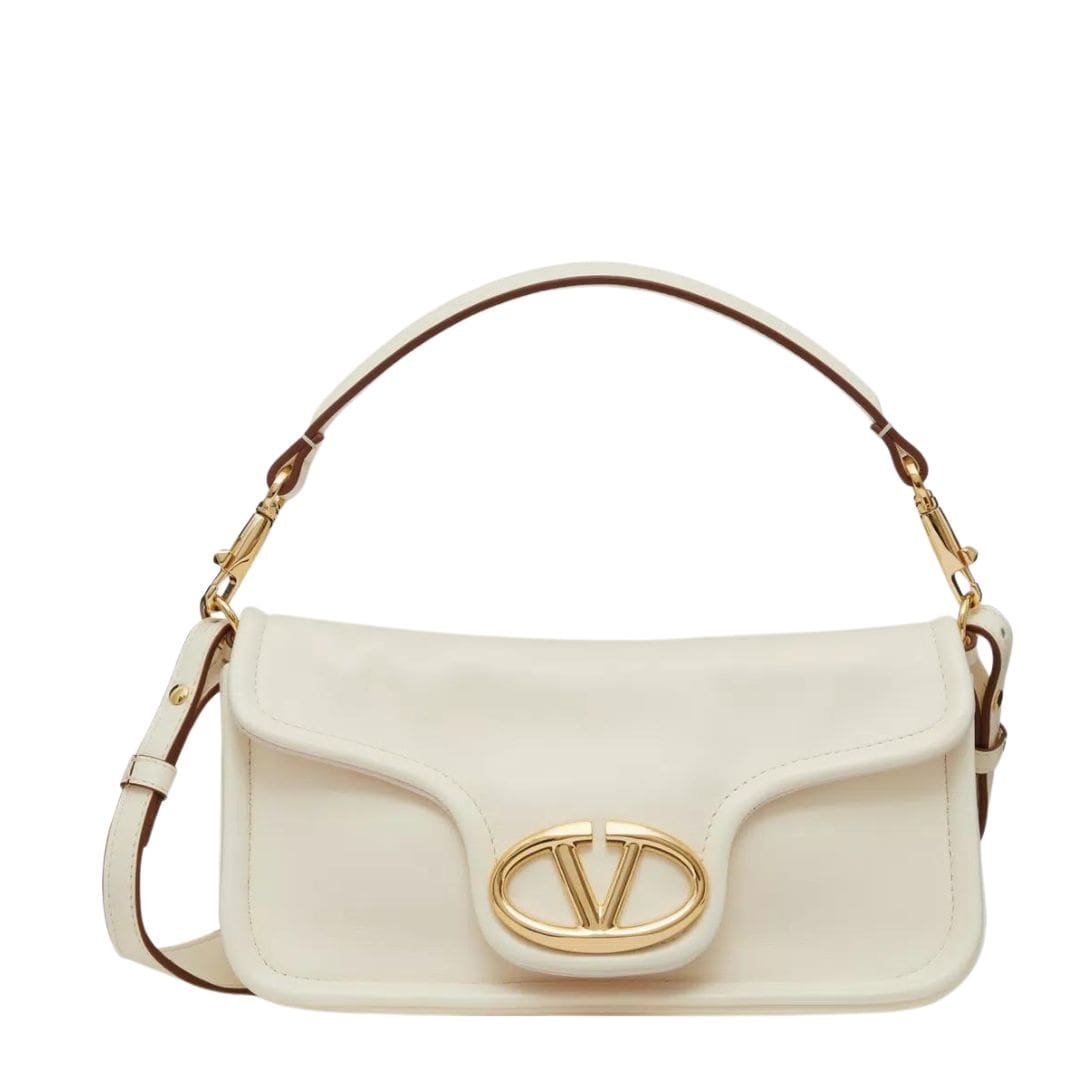 Introducing the Valentino Garavani VLogo 1960 nappa leather medium shoulder bag featuring a metallic VLogo Signature element. This versatile bag offers multiple carrying options – it can be worn on the shoulder/crossbody or carried by hand, thanks to its removable handle and detachable leather shoulder strap.