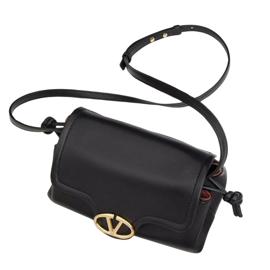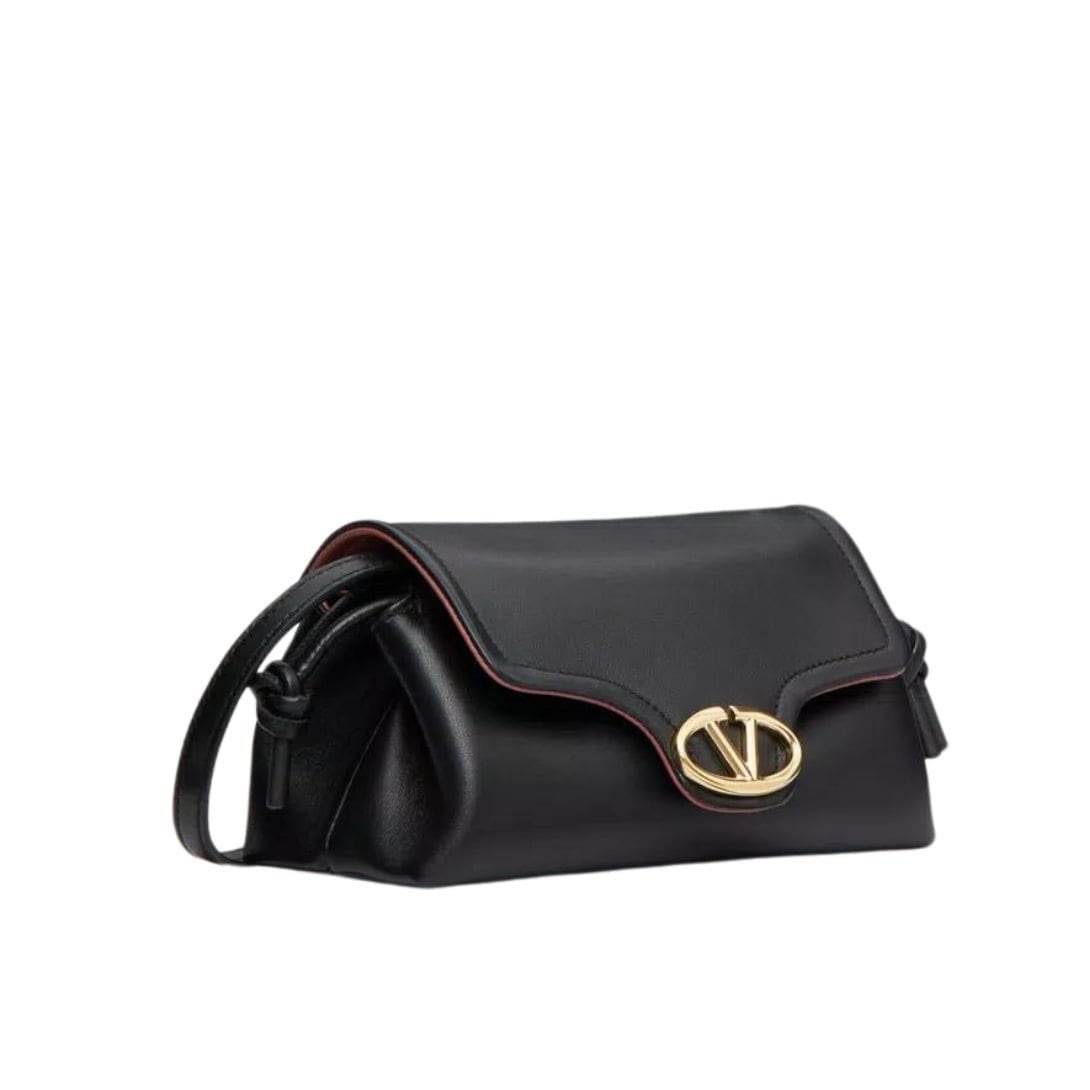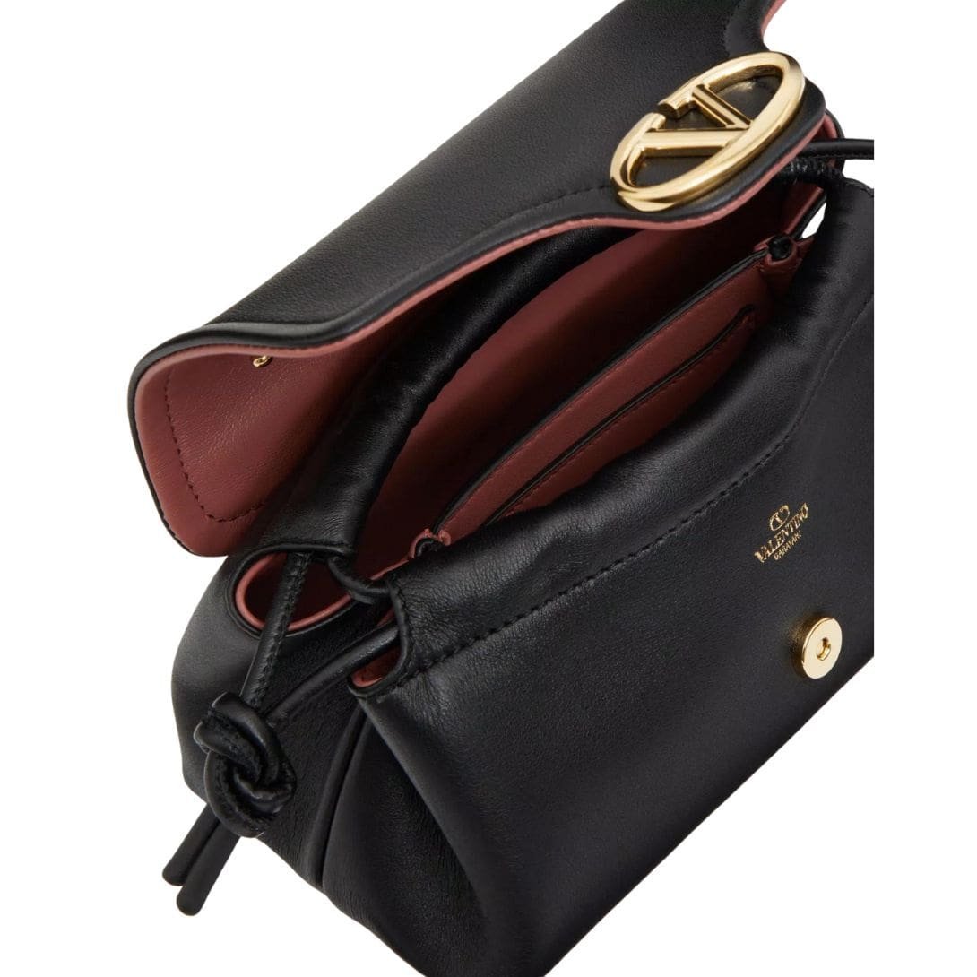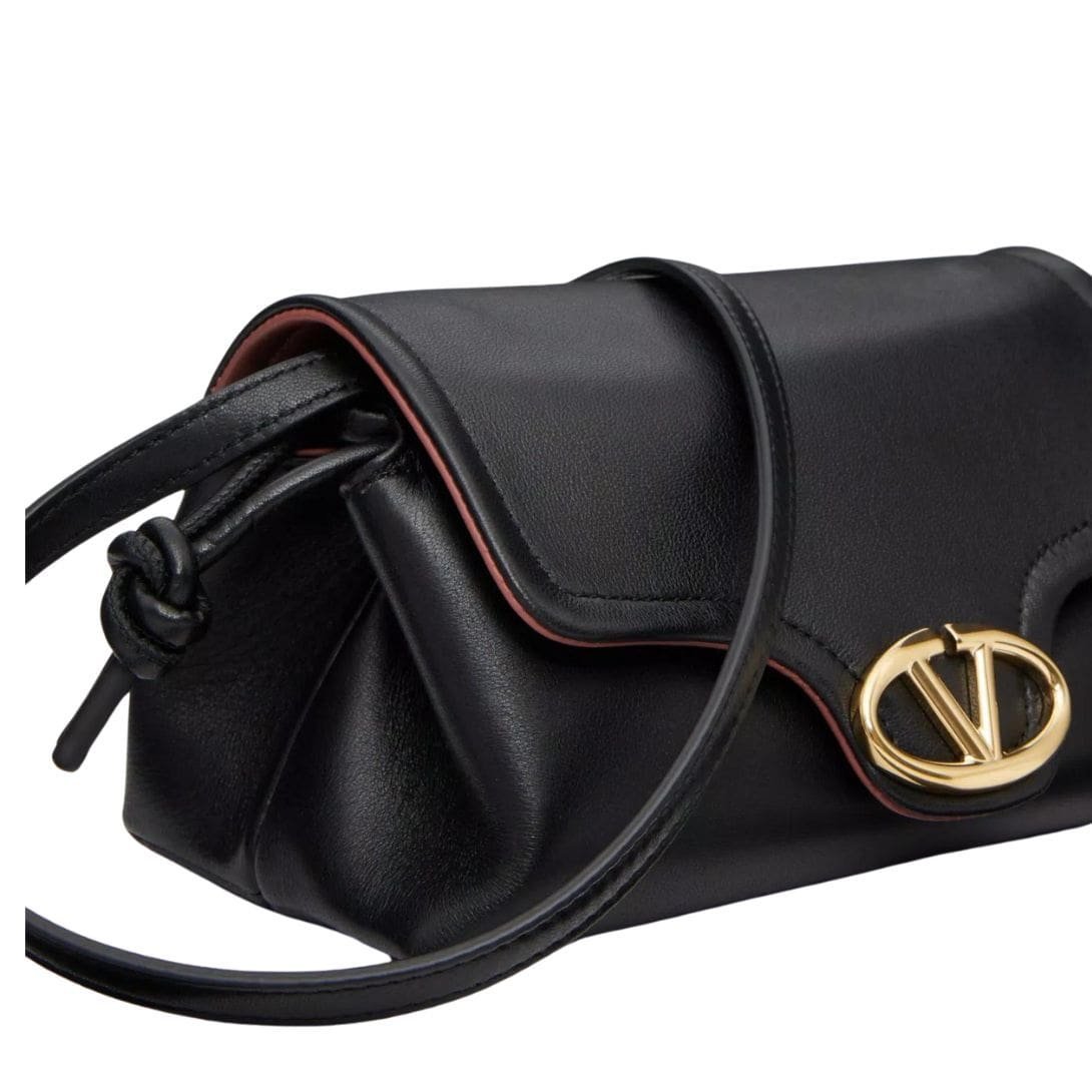 Introducing the Valentino Garavani VLogo 1960 nappa leather mini bag featuring a metallic VLogo Signature element. This versatile bag offers multiple carrying options – it can be worn on the shoulder/cross-body or carried by hand, thanks to its removable shoulder strap.