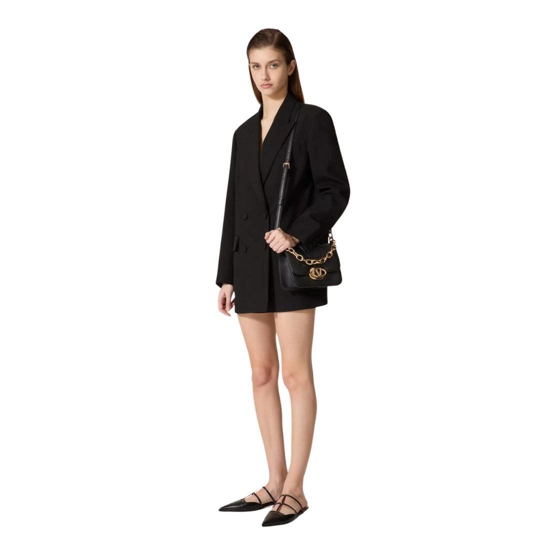 Introducing the Valentino Garavani VLogo O’Clock small nappa leather shoulder bag with chain, featuring a VLogo Signature clasp detail that elegantly opens the bag by turning the VLogo element clockwise. This versatile bag comes equipped with both a chain and a detachable leather shoulder strap, offering the flexibility to wear it as a crossbody/shoulder bag or carry it by hand.
