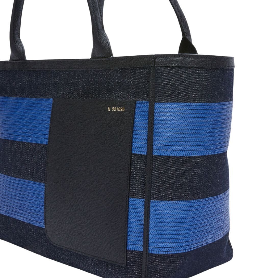 VALEXTRA TOTE BAG DENIM STRIPE MEDIUM