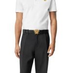 Crafted from the finest materials, this belt epitomizes the uncompromising quality synonymous with the Versace brand. The richly textured leather exudes luxury and sophistication, while ensuring durability and longevity. Each detail, from the precision stitching to the polished hardware, reflects the brand’s commitment to excellence, ensuring that this belt stands the test of time as a treasured wardrobe staple.
