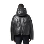The puffer silhouette of the jacket offers both style and functionality, providing warmth without compromising on fashion. Its quilted design not only adds visual interest but also ensures insulation, making it ideal for colder climates or chilly evenings. The strategic stitching enhances the jacket’s structure, creating a sleek and streamlined look that flatters the wearer’s silhouette.